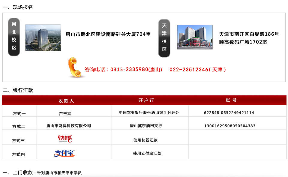 面授班型設置 電話:0315-2335980